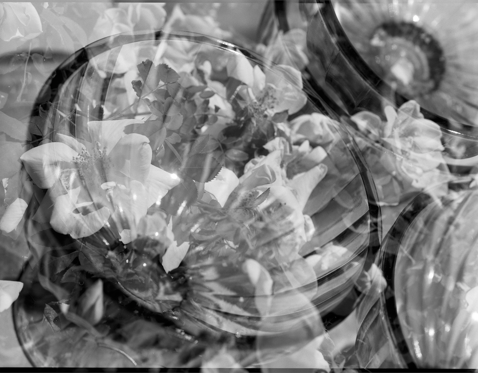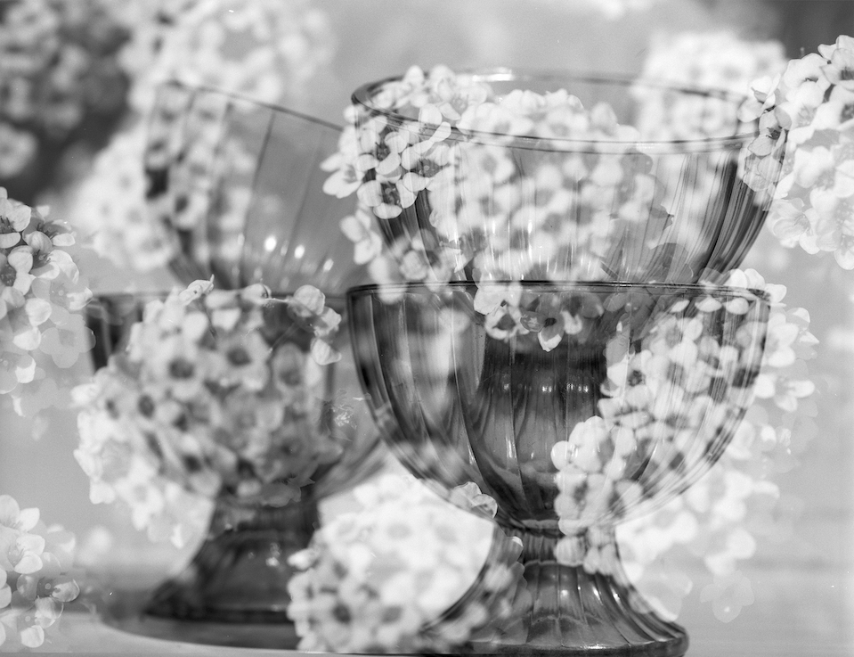 Black/white glass/flowers